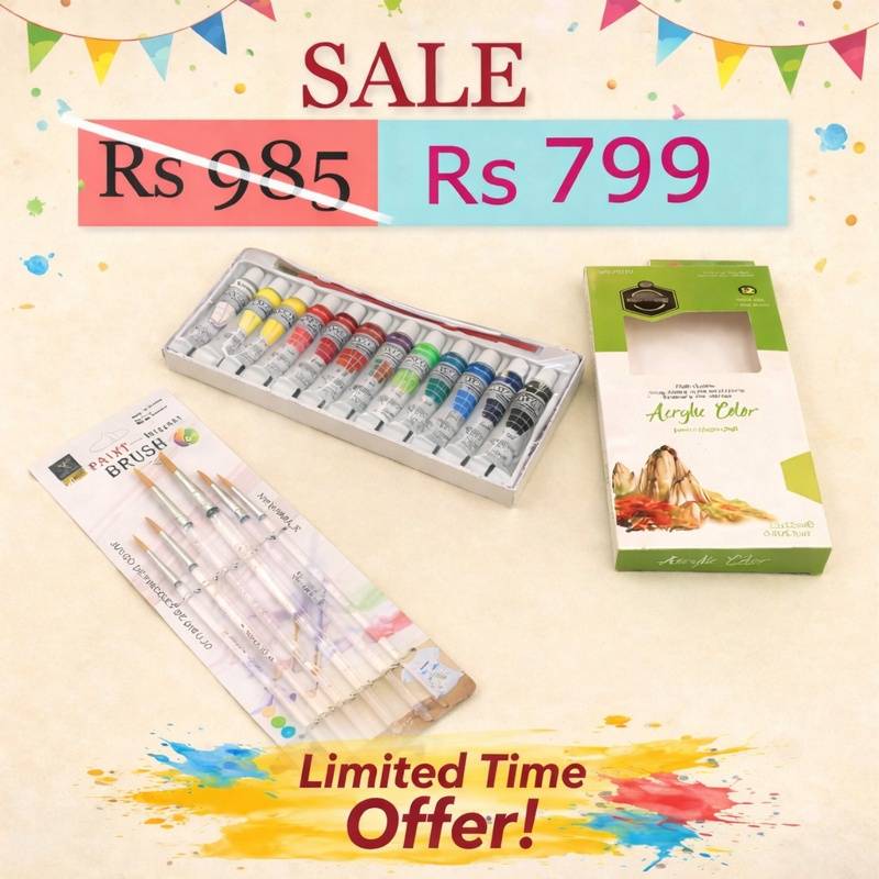 Art Pack of 12 Acrylic Paint (12ml) + Brushes 6pcs Transparent